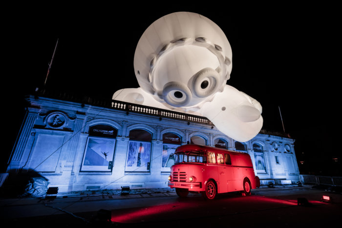 Deux Anooki géants (5-6 m) débarquent dans nos villes. Comme deux explorateurs urbains, ils parcourent le monde et transforment les grandes places et les façades en petits terrains de jeu. On les croise au détour d’une rue ou d’un bâtiment, accrochés, suspendus ou faisant des roulades. Ils entrent en dialogue avec l’architecture, d’une manière valorisante et positive pour le patrimoine.